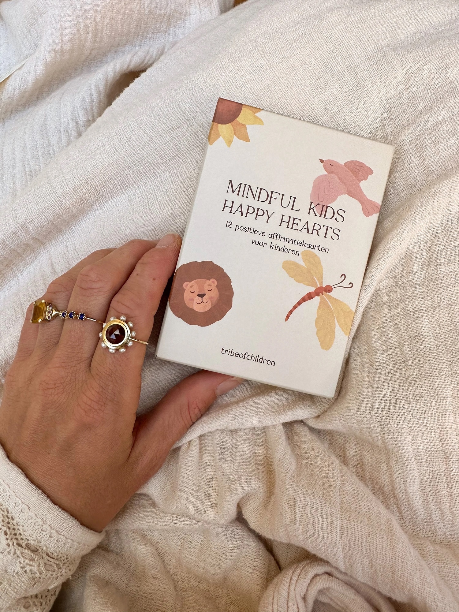 De kaartenset van tribeofchildren valt op door de illustraties in warme kleuren. De korte en krachtige affirmaties zoals 'Ik ben vrij' en 'Ik ben moedig' maken deze set geschikt om te gebruiken voor kinderen vanaf een jaar of 3: de teksten zijn vaak eenvoudig genoeg om ze al te kunnen begrijpen. Op de achterkant van het doosje vind je een QR-code die verwijst naar een video met mooie tips en activiteiten die horen bij de kaarten. Momenteel uitverkocht