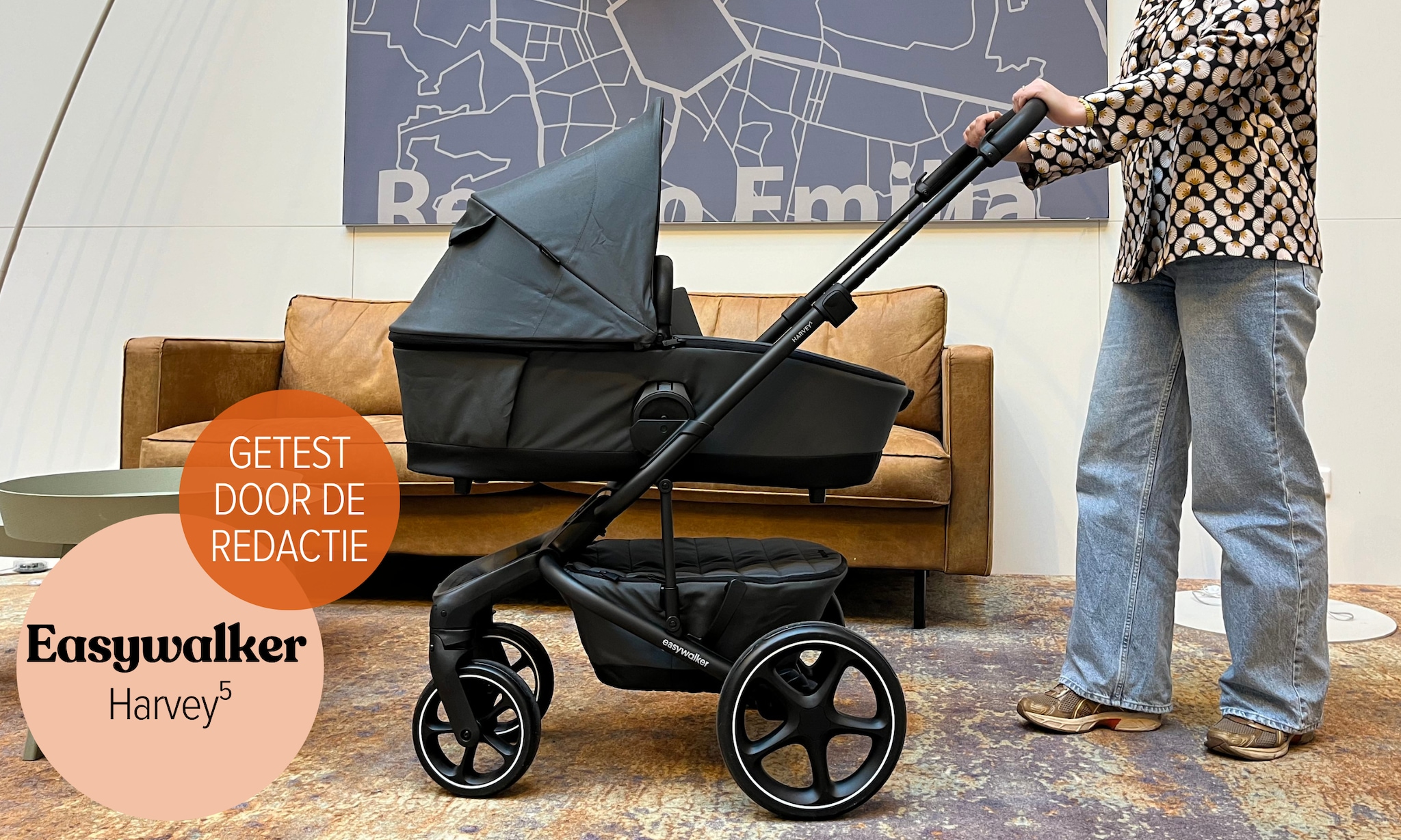 De Easywalker Harvey⁵ is een van de goedkopere kinderwagens die we testen (verkoopprijs gemiddeld 830 euro), maar hij doet wat betreft kwaliteit bijna niet onder voor duurdere kinderwagens zoals de Joolz Geo³. De Harvey⁵ zouden we aanraden als je op zoek bent naar een betaalbare en compacte kinderwagen: zowel in- als uitgeklapt is dit een zeer compacte wagen en met wieg weegt hij slechts 11 kilo. Groot pluspunt is dat je deze kinderwagen nog kunt uitbreiden naar een duo- of twin-kinderwagen. Verder blinkt hij uit in gebruiksgemak: je klapt 'm makkelijk in en uit, en hij heeft goedwerkende verstelmechanismes. Alles aan deze kinderwagen is dummy-proof. Het grootste minpunt, zeker voor lange mensen, is dat de wieg heel laag staat. Lees hier de volledige review van de Easywalker Harvey⁵