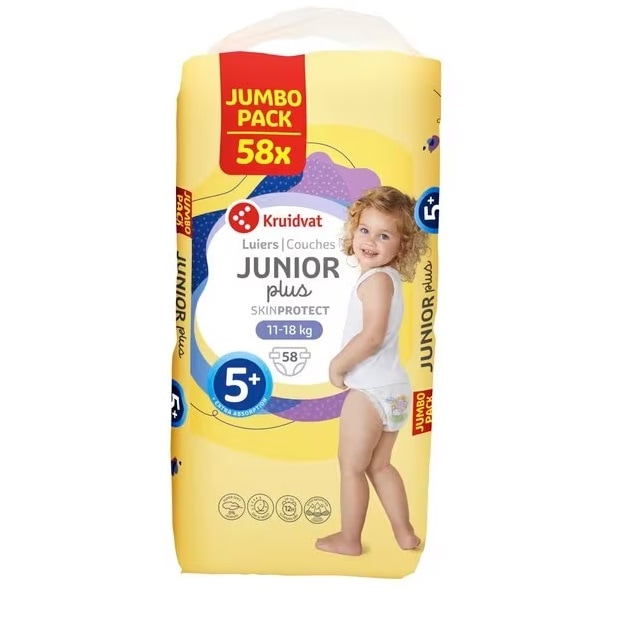 Bij de Plus betaal je online € 5,39 voor een pak van 20 luiers, dat is omgerekend ongeveer € 0,27 per luier. Wel een minpunt: er zijn geen jumbo- of maandverpakkingen verkrijgbaar, zoals bij Kruidvat- en Pampers-luiers.