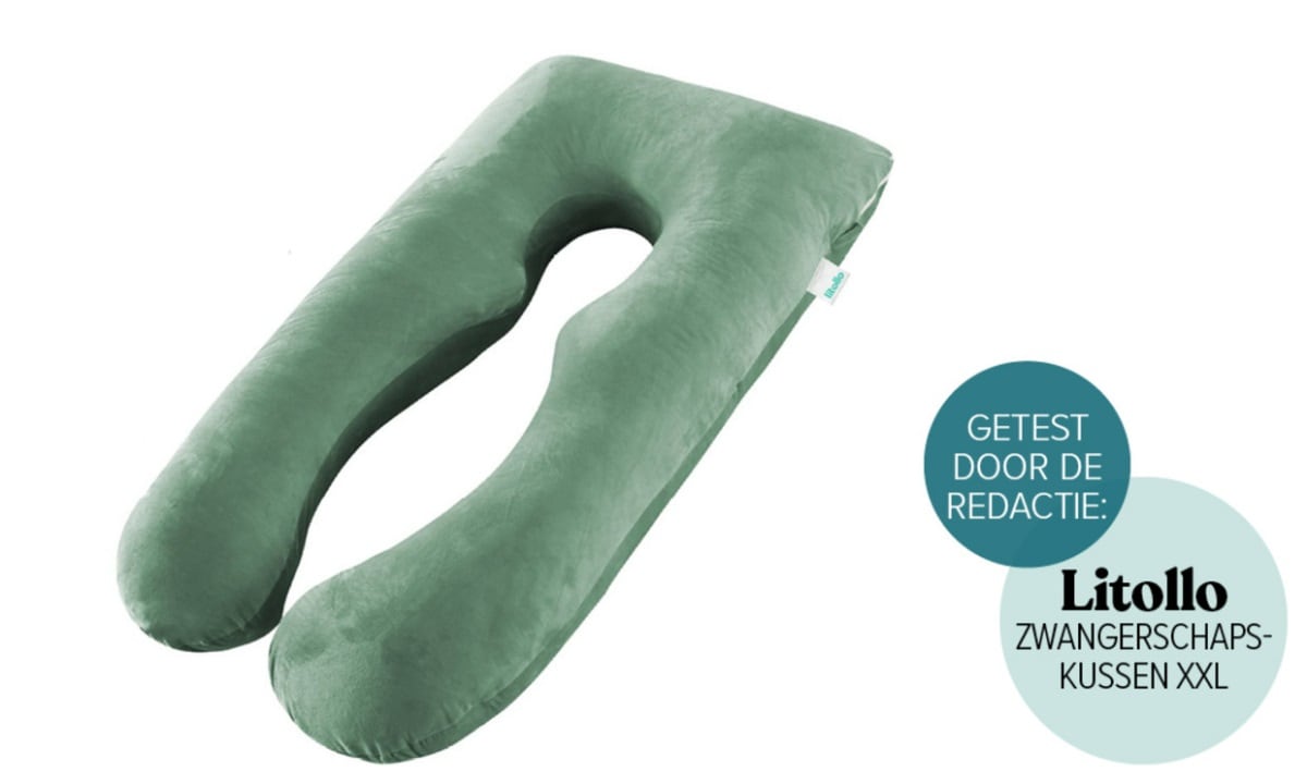 De Litollo is het enige U-vormige kussen uit de test. Dit full body-kussen ondersteunt je hele lichaam, is zacht, ontzettend comfortabel en doet een beetje denken aan een fatboy. Het is alleen wat lastig om eruit te komen en zeker als je hoogzwanger bent is dat niet echt handig. Eenmaal bevallen is het kussen heerlijk om met je baby in te liggen. Ook liggend voeden kan heel goed met dit kussen. Minder fijn is de omvang; met drie kilo en twee meter ligt het al snel in de weg.