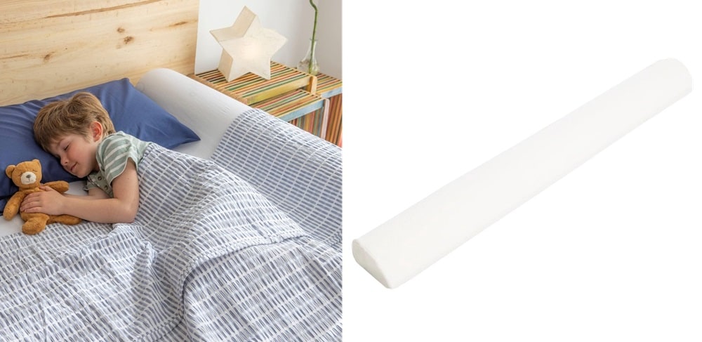 Nog makkelijker met een beweeglijke peuter is een bedhekje voor aan de open zijkant van het bed. Je hebt verschillende varianten: een echt hekje waarvan je de 'voet' onder het matras kunt schuiven of een zachte bedrand van traagschuim die je onder het hoeslaken vastzet, zoals deze van DERYAN.