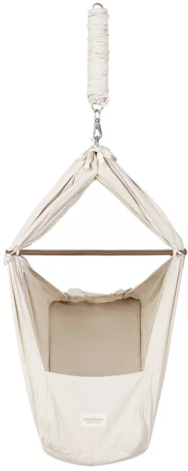 Vul de ruimte aan met meer bescheiden meubels, zoals een open rotan wandrek of inklapbare commode. Wil je écht voor compact gaan? Dan kan een hangwieg zoals de Moonboon een uitkomst zijn.