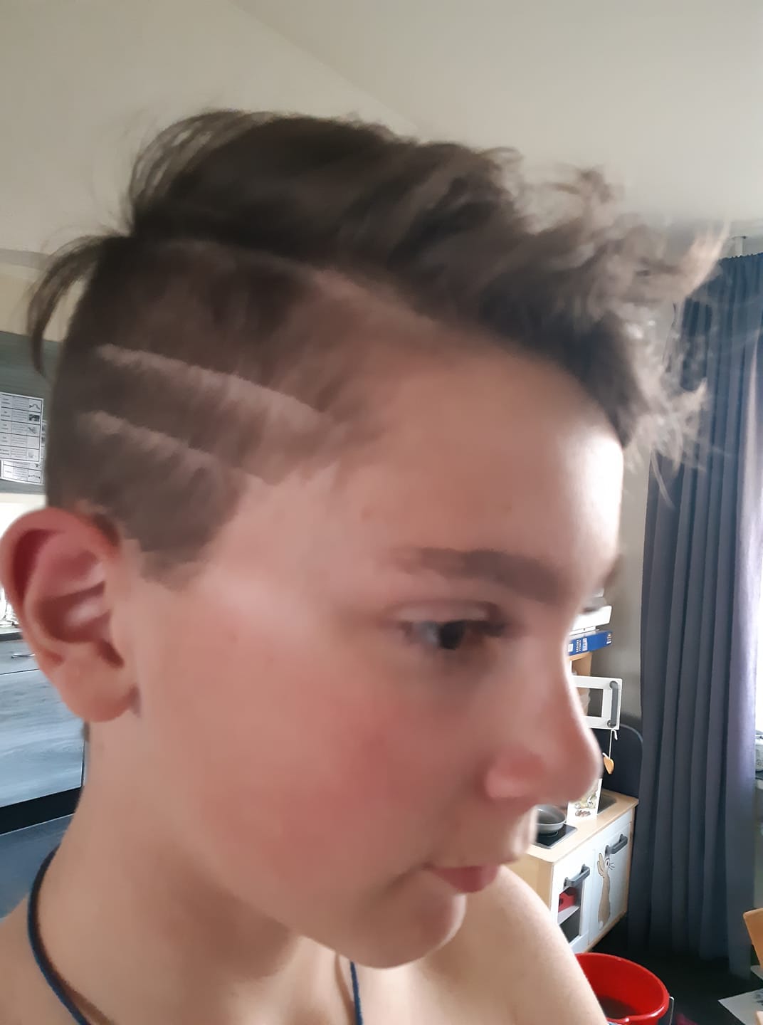 Nicole: 'Voor de eerste keer zelf met de tondeuse en geknipt. Volgens mij best goed gelukt.'